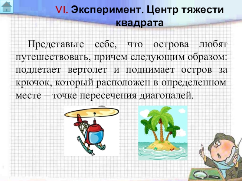 Слайд 19VI. Эксперимент. Центр тяжести квадрата