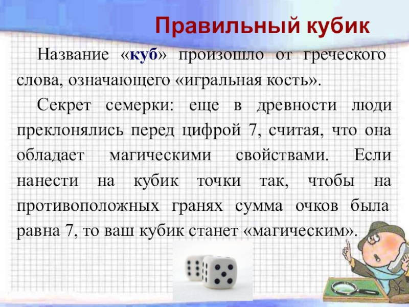 Название «куб» произошло от греческого слова, означающего «игральная кость».