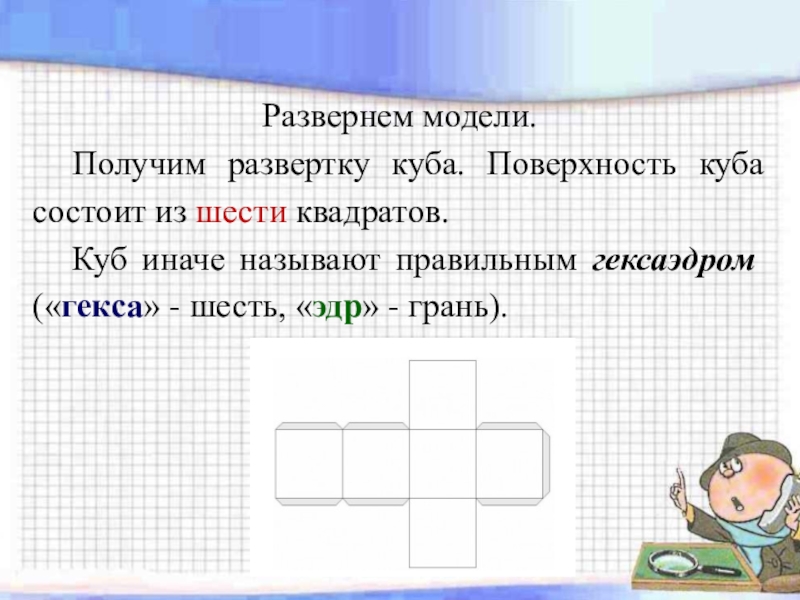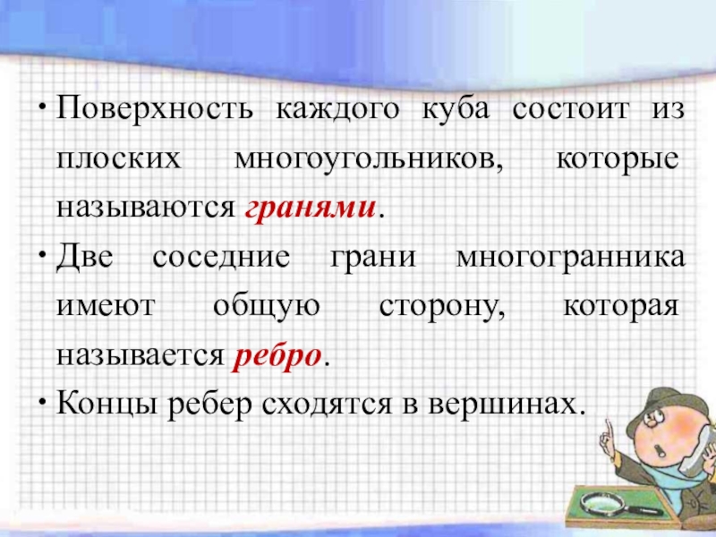 Слайд 26Поверхность каждого куба состоит из плоских многоугольников, которые называются гранями.