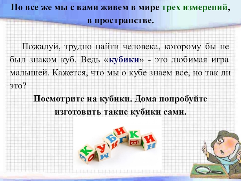Слайд 24Но все же мы с вами живем в мире трех измерений,