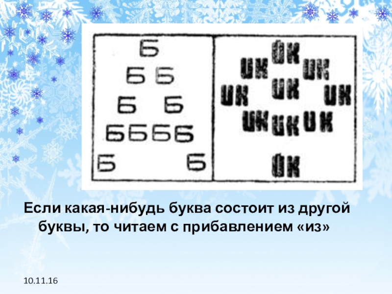 Если какая-нибудь буква состоит из другой буквы, то читаем с прибавлением