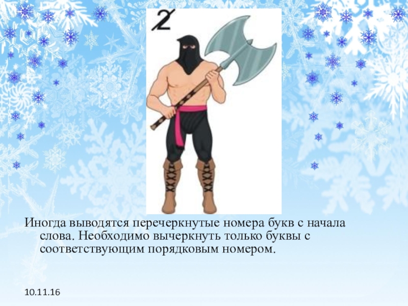 Иногда выводятся перечеркнутые номера букв с начала слова. Необходимо вычеркнуть только