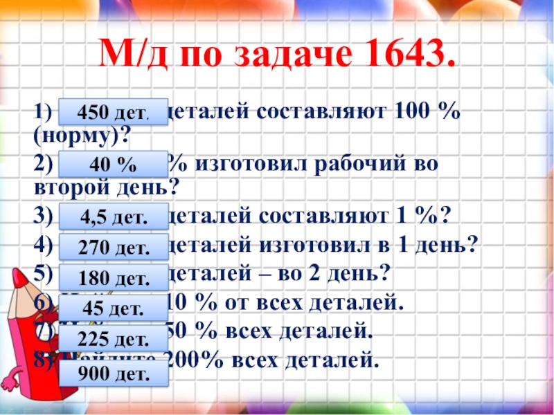 3) Сколько деталей составляют 1 %?