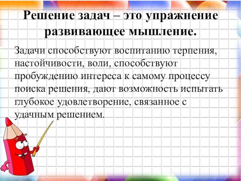 Слайд 5Решение задач – это упражнение развивающее мышление.