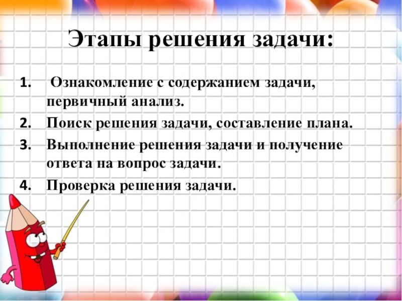 Этапы работы над текстовой задачей.