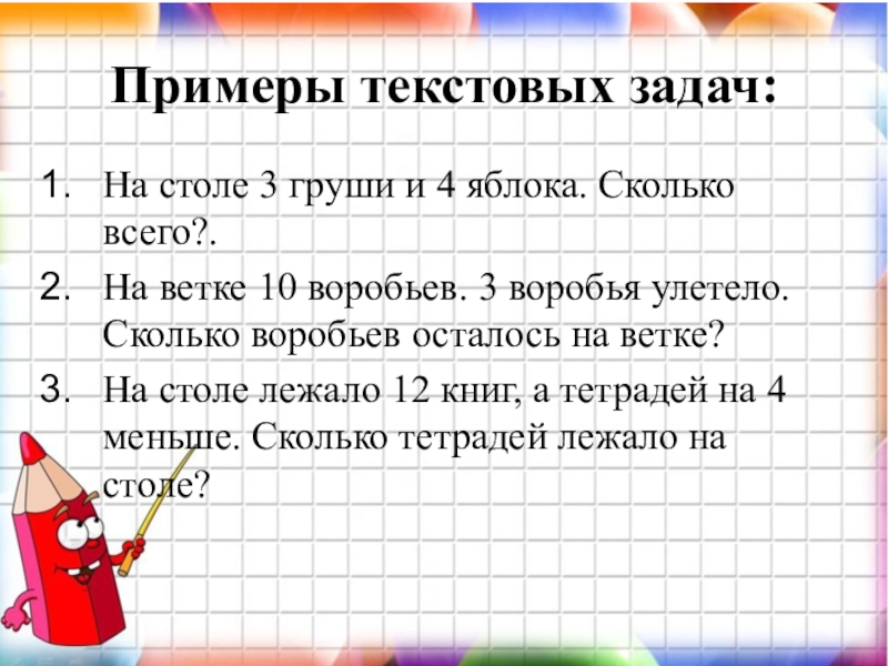 Слайд 4Примеры текстовых задач: