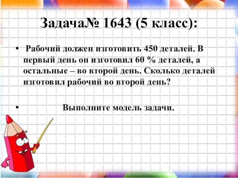Слайд 22Задача№ 1643 (5 класс):