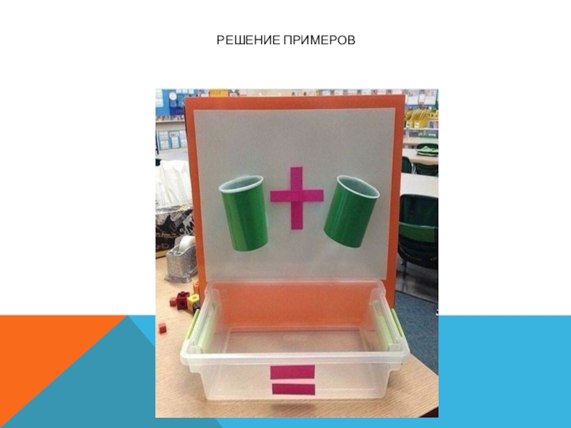 Слайд 7Решение примеров с помощью подручного материала