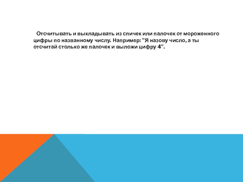 Слайд 13 Отсчитывать и выкладывать из спичек или палочек от мороженного цифры по
