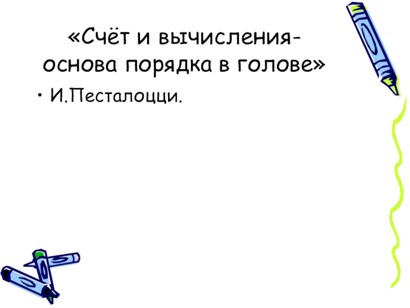 «Счёт и вычисления- основа порядка в голове»И.Песталоцци.