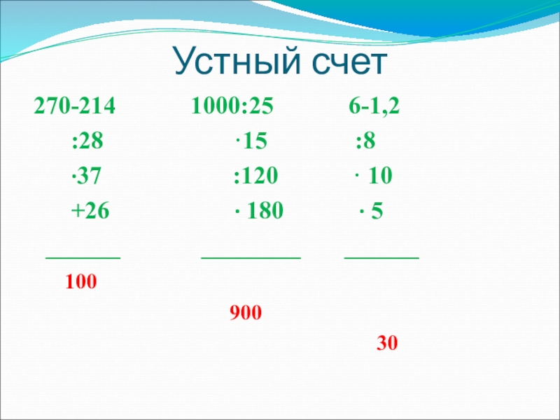 Устный счет270-214      1000:25      6-1,2   :28