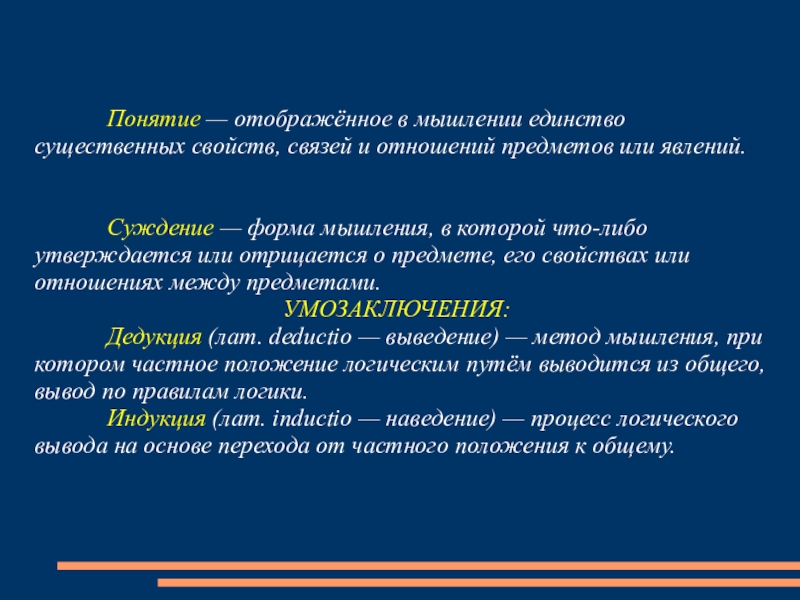 Слайд 18 Понятие — отображённое в мышлении единство существенных свойств, связей и отношений