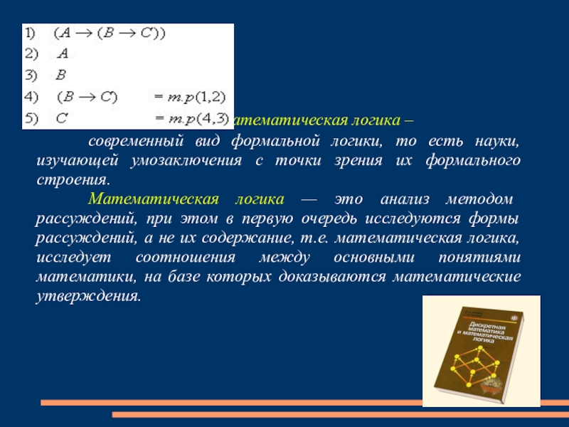 Математическая логика – современный вид формальной логики, то есть науки, изучающей
