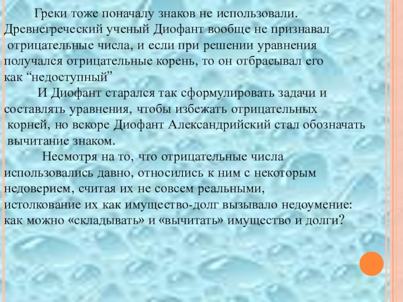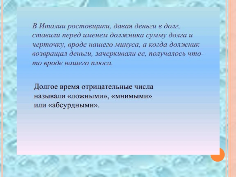 Слайд 19ОТРИЦАТЕЛЬНЫЕ ЧИСЛА В ИСТОРИИ