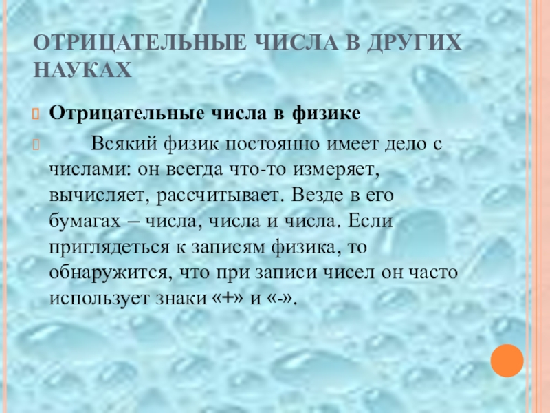 Слайд 12ОТРИЦАТЕЛЬНЫЕ ЧИСЛА В ДРУГИХ НАУКАХ