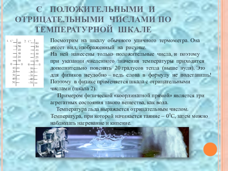 Слайд 15 С ПОЛОЖИТЕЛЬНЫМИ И ОТРИЦАТЕЛЬНЫМИ ЧИСЛАМИ ПО ТЕМПЕРАТУРНОЙ ШКАЛЕ