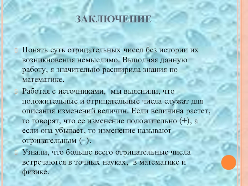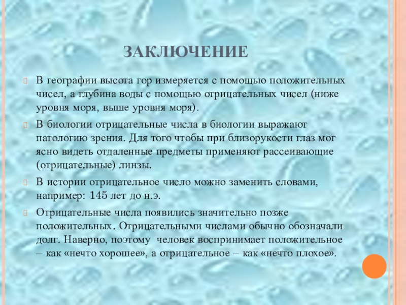 В своей исследовательской работе мы рассмотрели использование отрицательных чисел не только