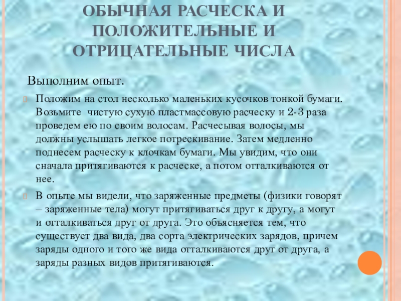 Слайд 13ОБЫЧНАЯ РАСЧЕСКА И ПОЛОЖИТЕЛЬНЫЕ И ОТРИЦАТЕЛЬНЫЕ ЧИСЛА