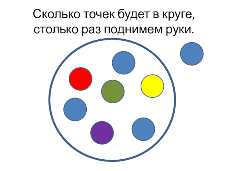 Слайд 3Сколько точек будет в круге, столько раз поднимем руки.