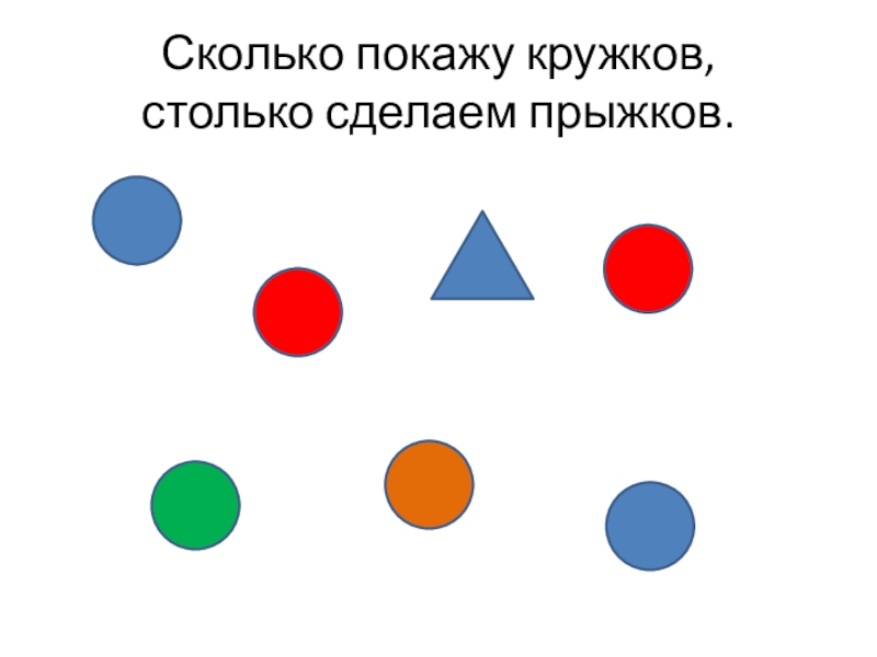 Слайд 2Сколько покажу кружков, столько сделаем прыжков.
