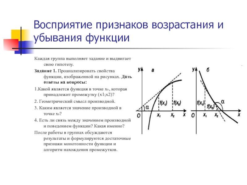 Слайд 9Восприятие признаков возрастания и убывания функции