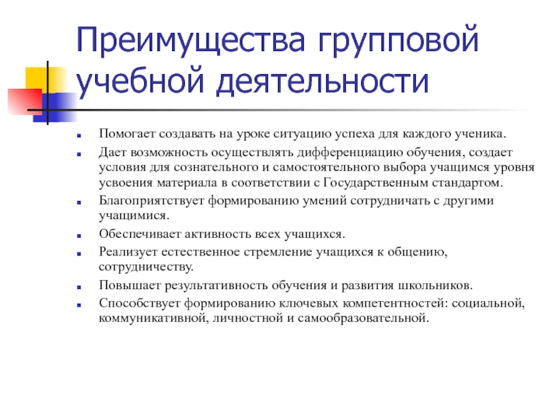 Благоприятствует формированию умений сотрудничать с другими учащимися.