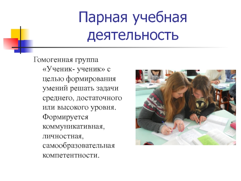 Гомогенная группа «Ученик- ученик» с целью формирования умений решать