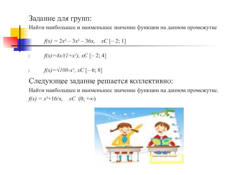 Найти наибольшее и наименьшее значение функции на данном промежутке