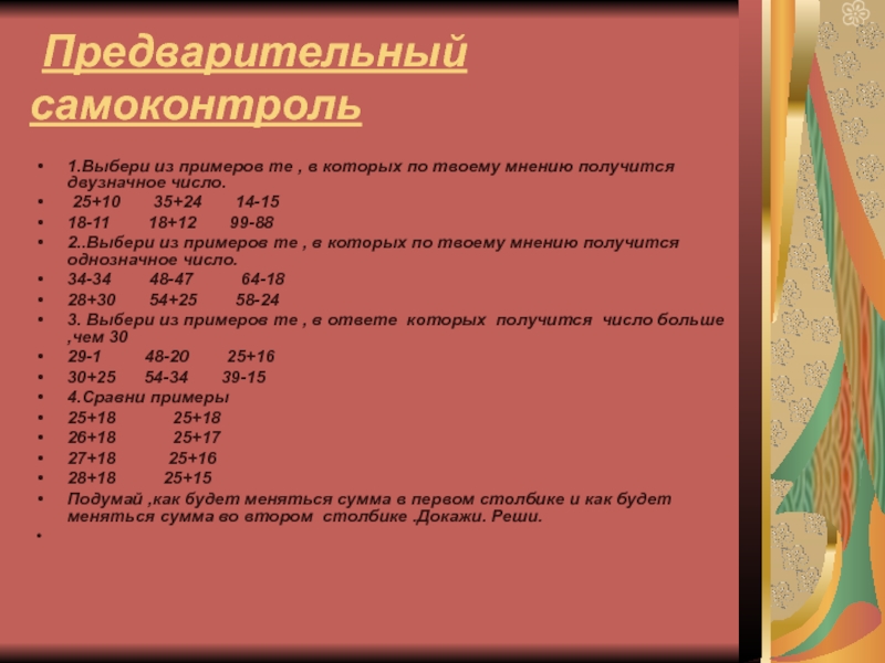 2..Выбери из примеров те , в которых по твоему мнению получится однозначное число.