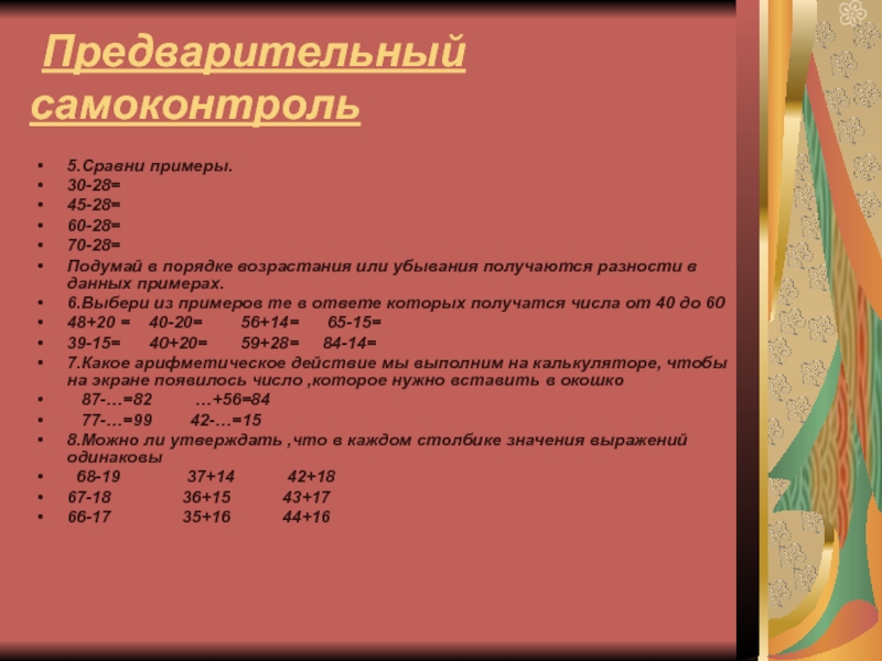6.Выбери из примеров те в ответе которых получатся числа от 40 до 60