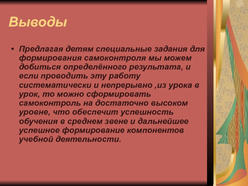 (исследования показывают ,что уже в 4-ом классе младшие школьники могут осознанно контролировать себя при выполнении заданий)