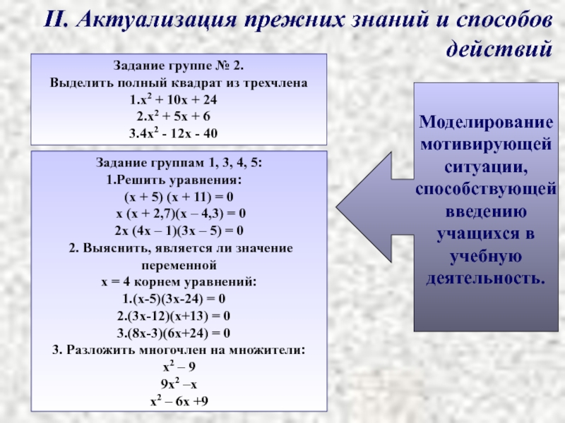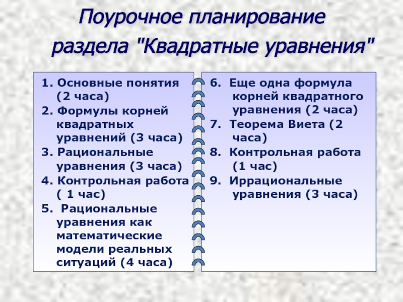 6. Еще одна формула корней квадратного уравнения (2 часа)