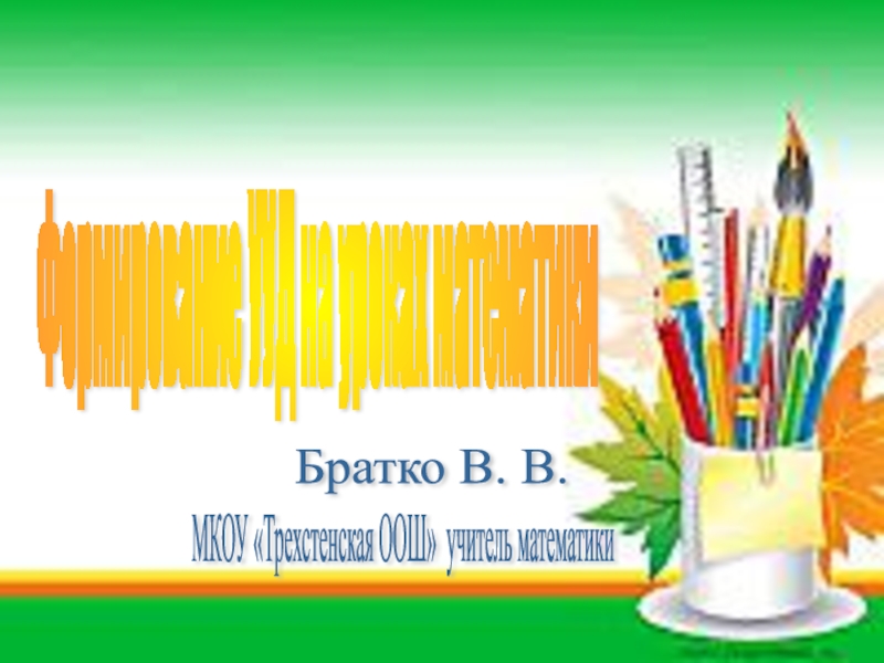 Формирование УУД на уроках математики Братко В. В. МКОУ «Трехстенская ООШ» учитель математики