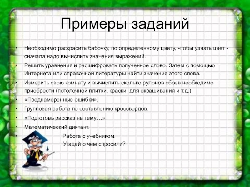 Примеры заданийНеобходимо раскрасить бабочку, по определенному цвету, чтобы узнать цвет -сначала надо вычислить значения выражений.Решить уравнения и