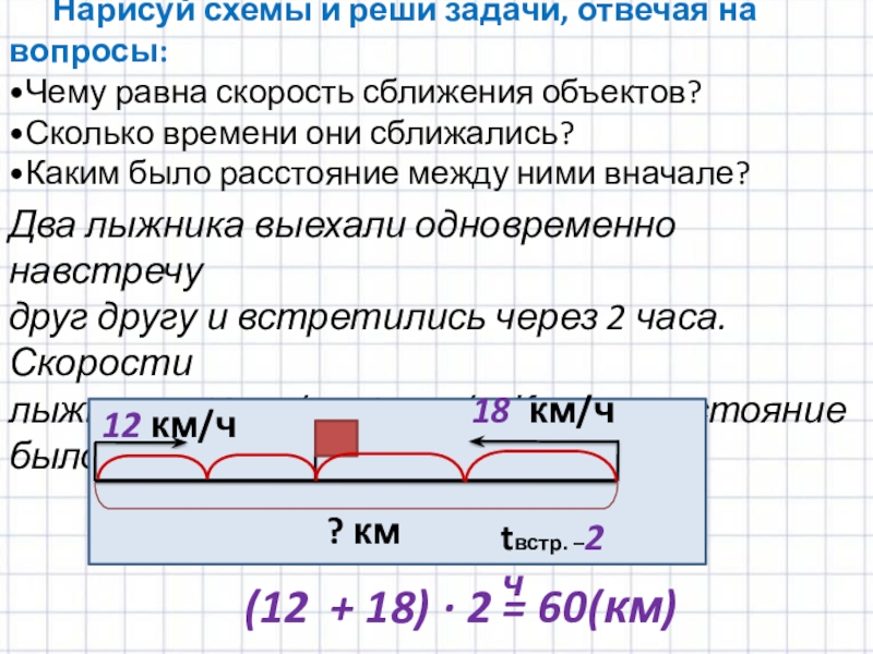 лыжников 12 км/ч и 18 км/ч. Какое расстояние было между ними вначале?