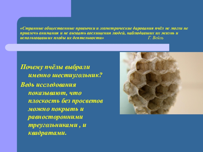Ведь исследования показывают, что плоскость без просветов можно покрыть и равносторонними треугольниками , и квадратами.