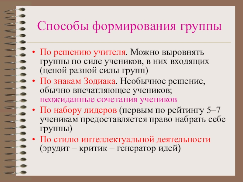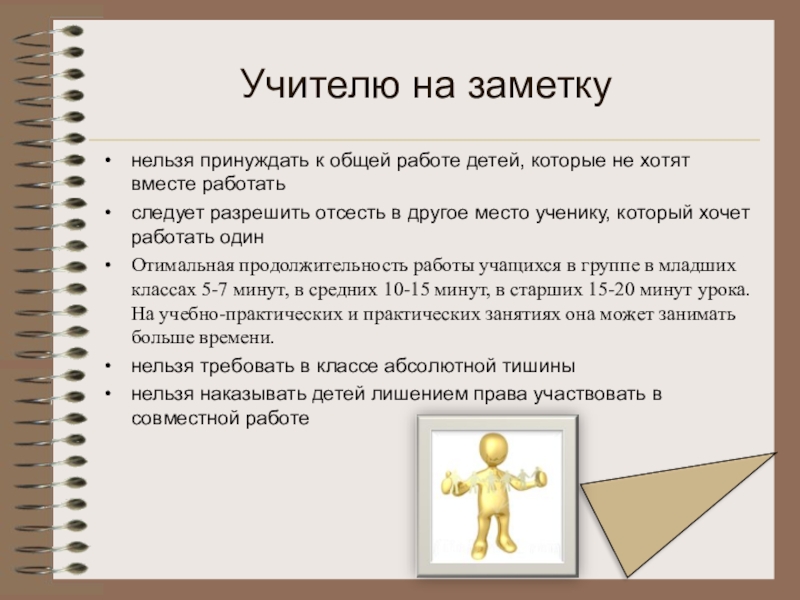 Организация групповой работы требует от учителя особых умений, усилий