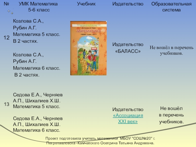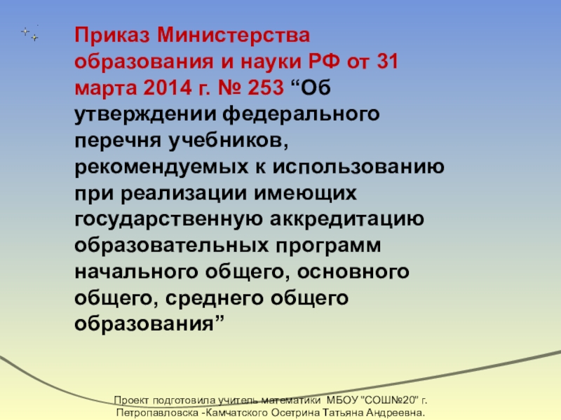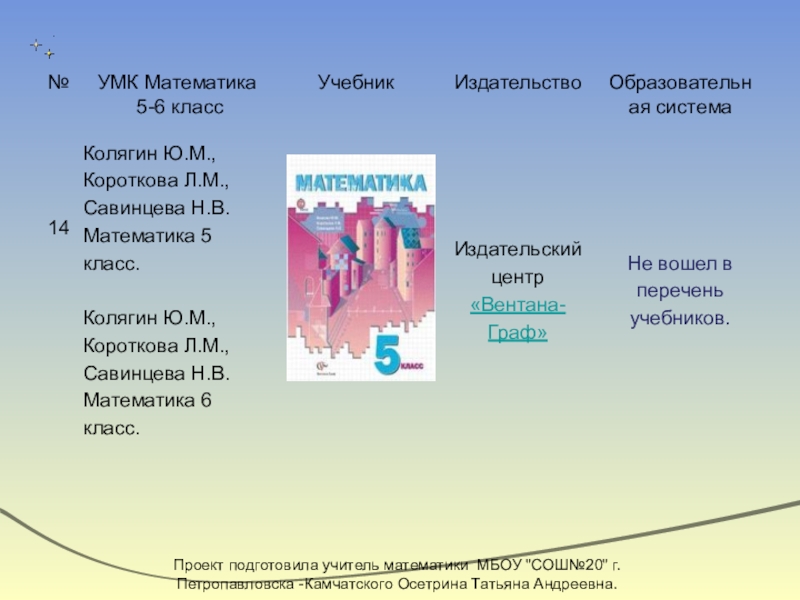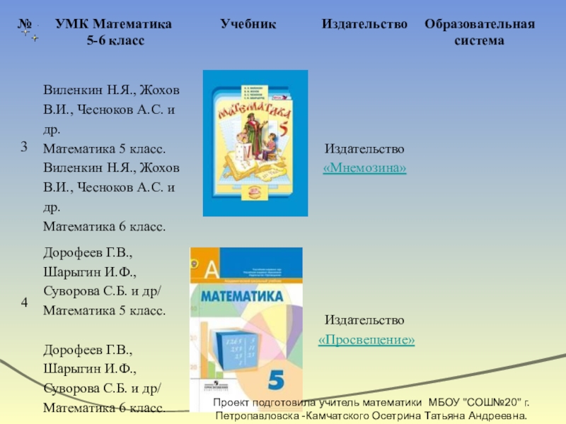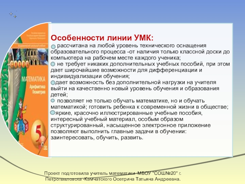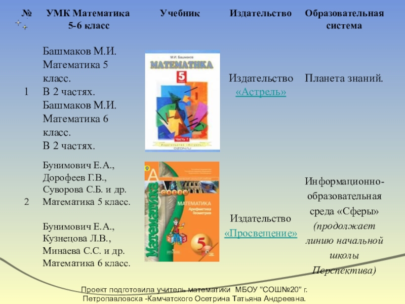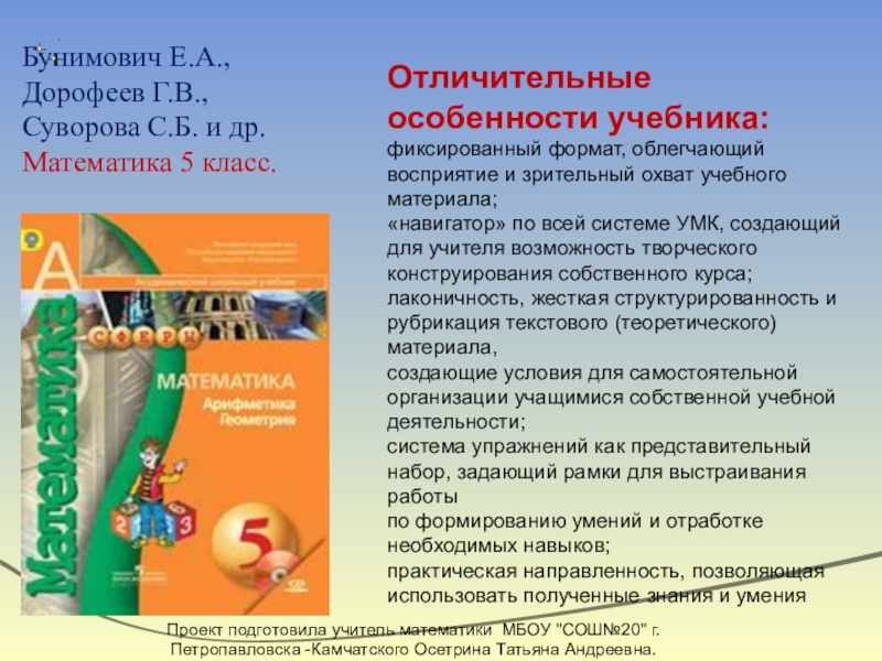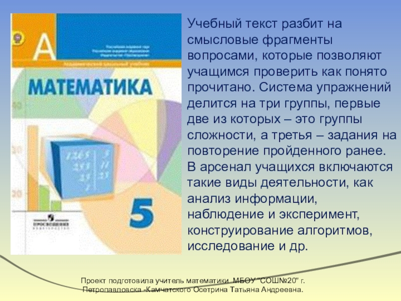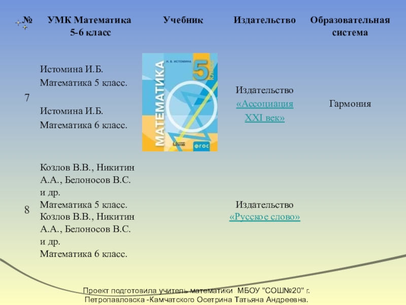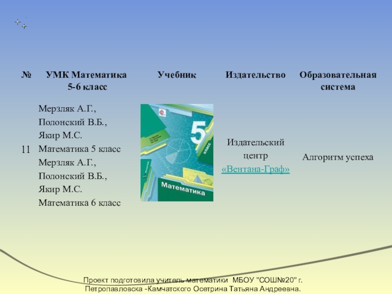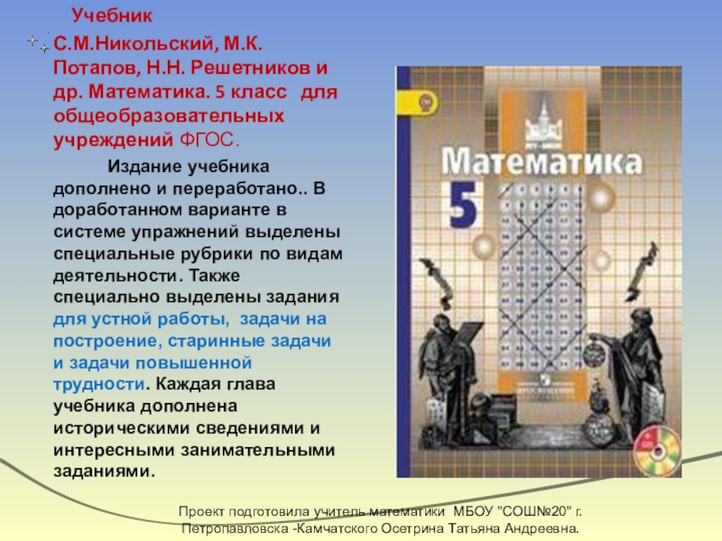 Проект подготовила учитель математики МБОУ "СОШ№20" г.Петропавловска -Камчатского Осетрина Татьяна Андреевна.