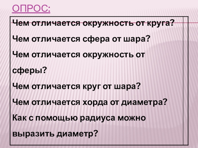Презентация, доклад и конспект урока по теме Окружность, шар, круг, сфера
