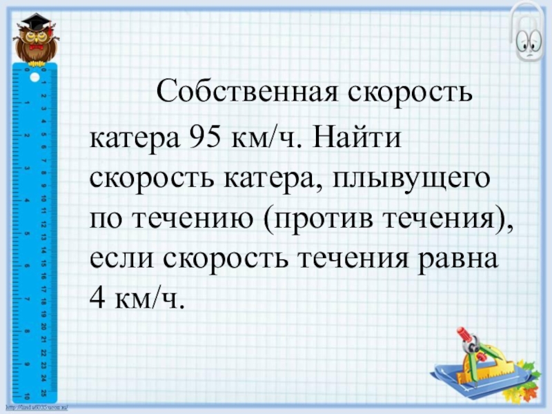 Слайд 18 Собственная скорость катера 95 км/ч. Найти скорость