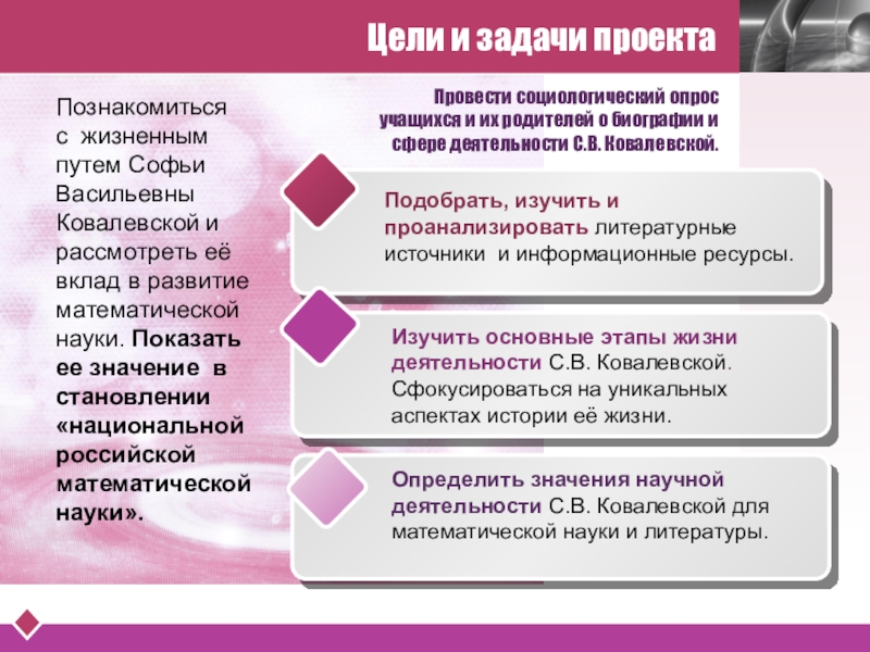 Провести социологический опрос учащихся и их родителей о биографии и сфере деятельности С.В. Ковалевской.