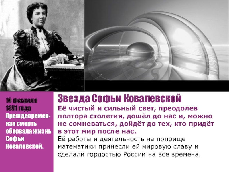 ная смерть оборвала жизнь Софьи Ковалевской.
