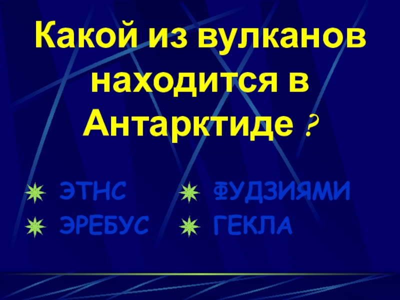 Слайд 12Какой из вулканов находится в Антарктиде ?