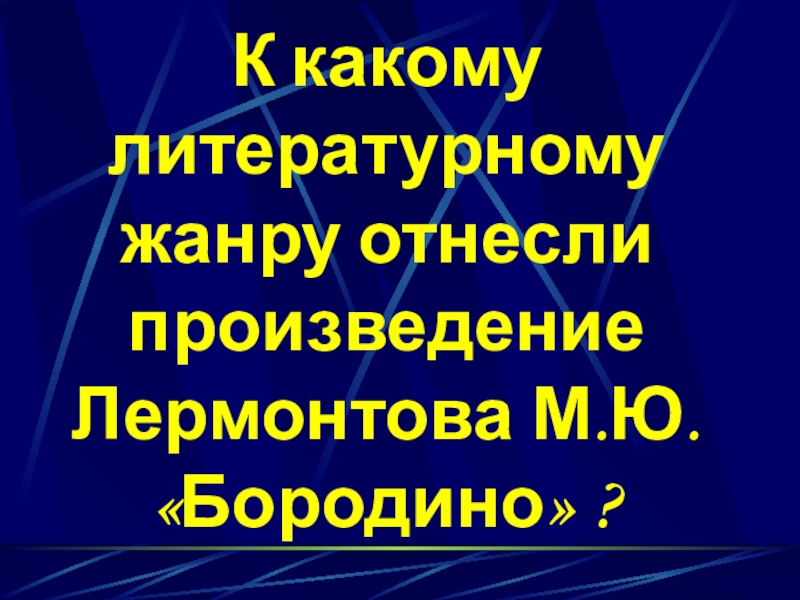 Слайд 18К какому литературному жанру отнесли произведение Лермонтова М.Ю. «Бородино» ?