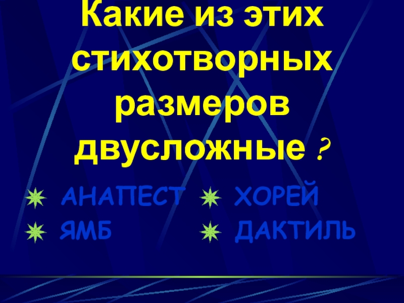 Слайд 15Какие из этих стихотворных размеров двусложные ?