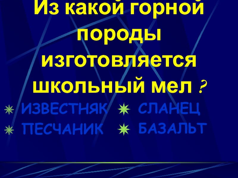Слайд 6Из какой горной породы изготовляется школьный мел ?