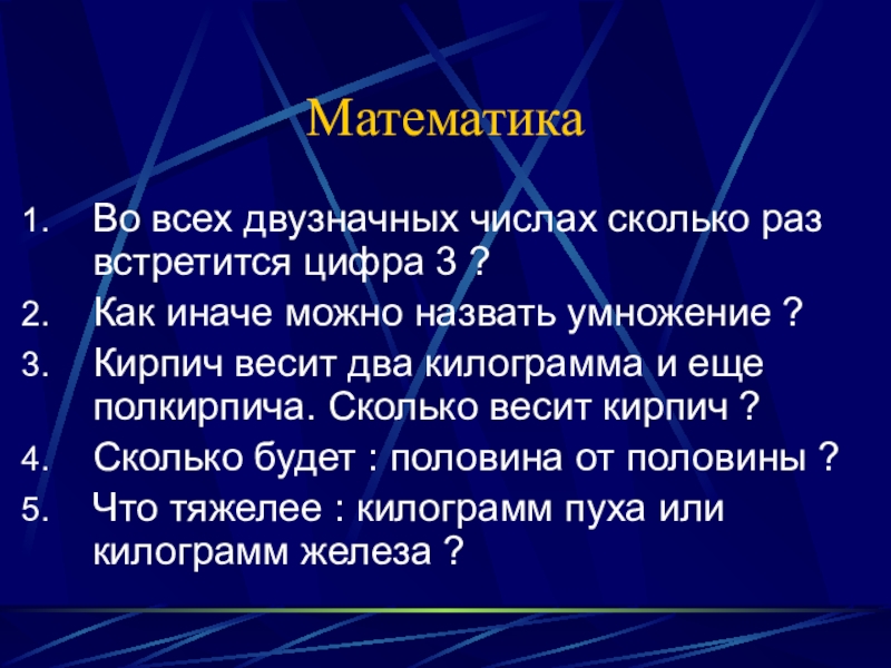 Кирпич весит два килограмма и еще полкирпича. Сколько весит кирпич ?