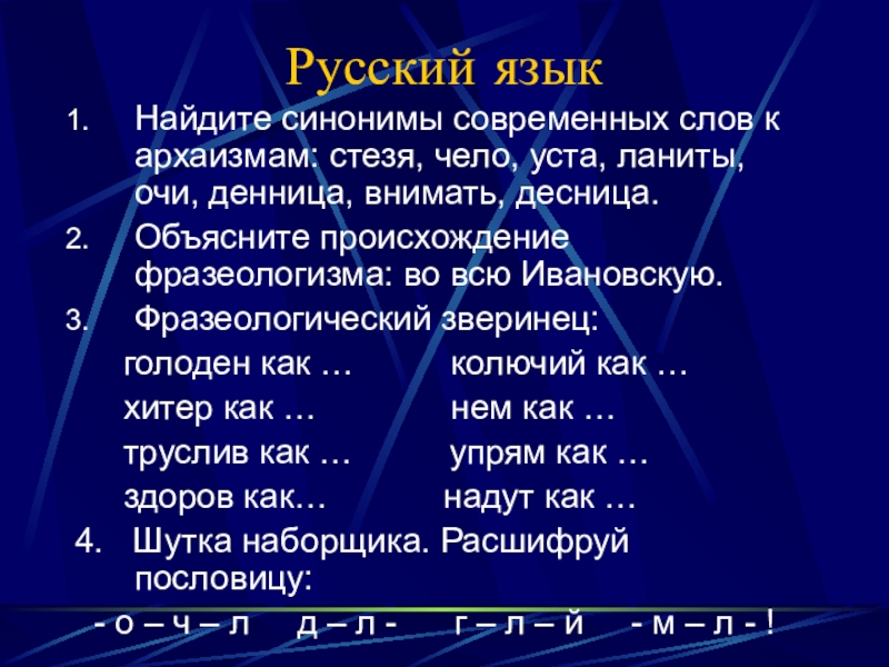 Найдите синонимы современных слов к архаизмам: стезя, чело, уста, ланиты,