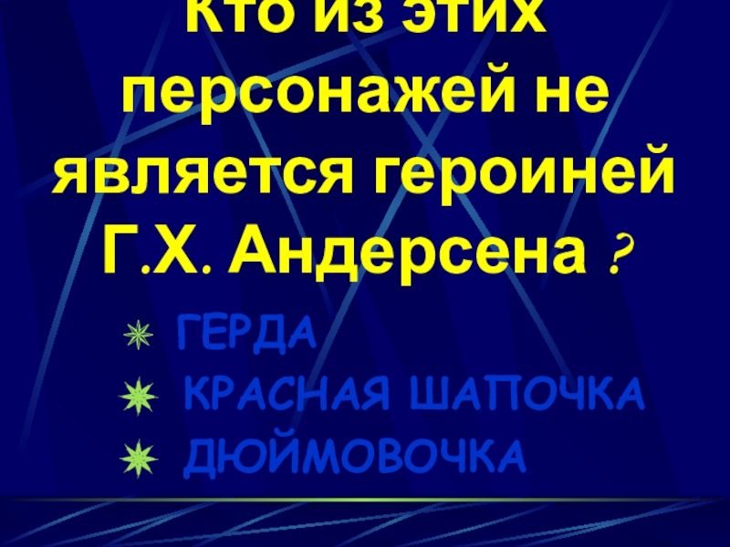 Слайд 8Кто из этих персонажей не является героиней Г.Х. Андерсена ?