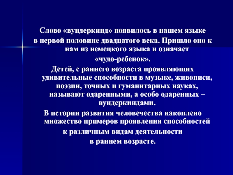 Слайд 2Слово «вундеркинд» появилось в нашем языке